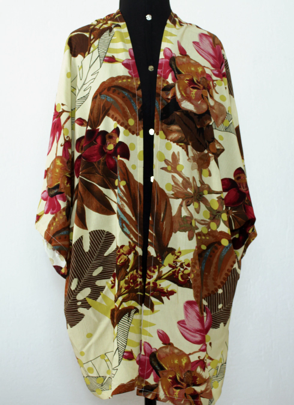 Descrição desta peça: Kimono com corte reto. Mangas amplas. Acabamento com decote em V nas costas. Tamanho Único.